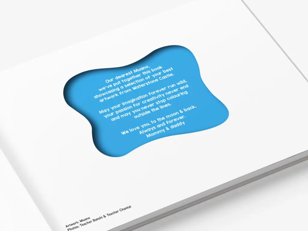 - A unique cover with your child’s artwork and their name as the title